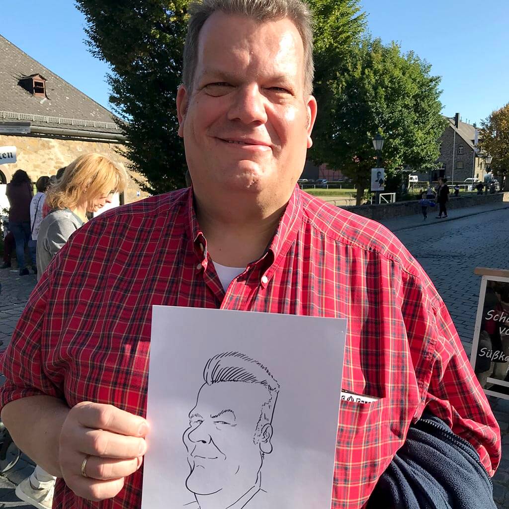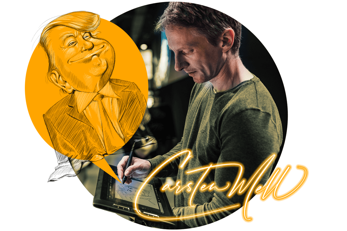 Jahrgang 1974, seit frühester Kindheit begeisterter Zeichner. Seit 1995 hauptberuflich Illustrator, ich habe schon unzählige Menschen zu Papier bringen dürfen, mit viel Humor, aber nie respektlos. Und immer mit der Neugier und Begeisterung für neue Themen und Herausforderungen.