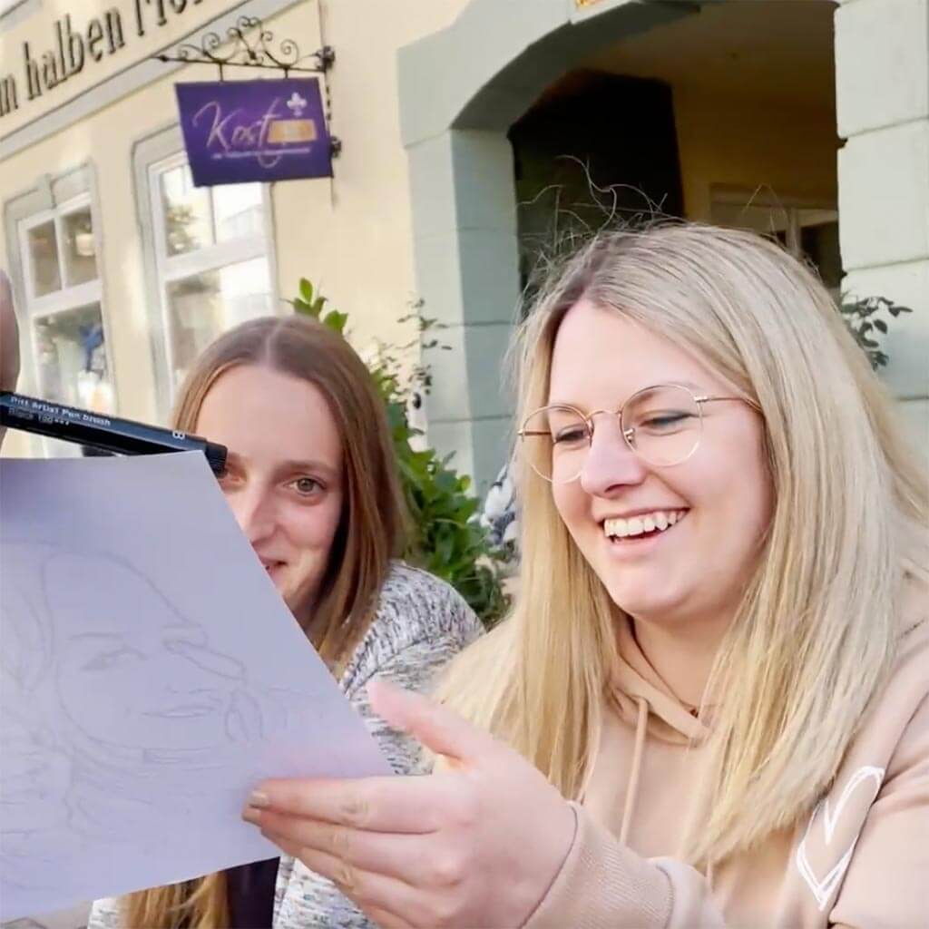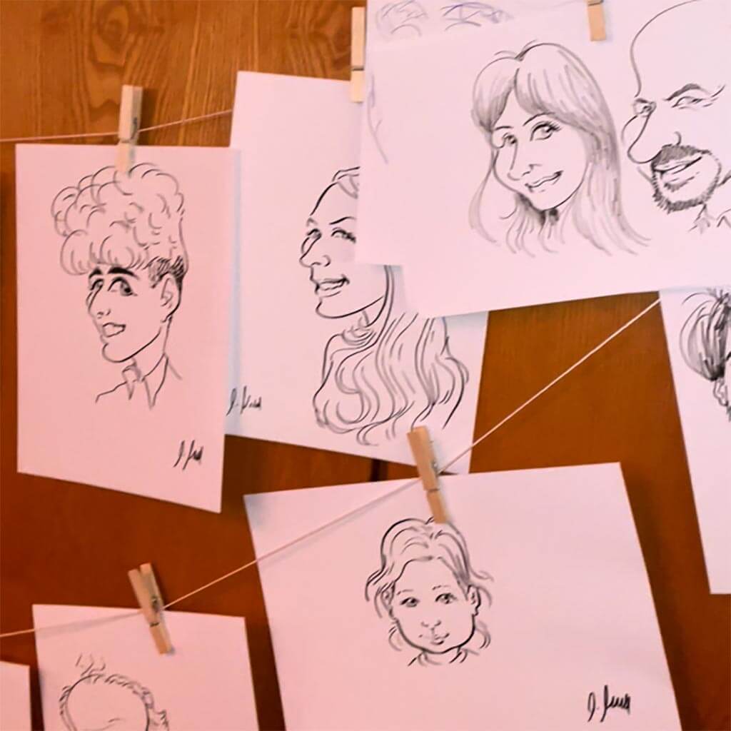 Ein Schnellzeichner, der die Gäste pro Person in etwa drei Minuten zeichnet, ist ideal, um einen Anziehungspunkt zu erzeugen, für große Unterhaltung zu sorgen, und eine dauerhafte Erinnerung zu schaffen.
